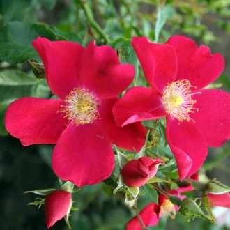 Среди почвопокровных роз этот сорт особенно привлекает внимание, благодаря интересной игре цветовых оттенков. Цветки с бархатным блеском, фиолетово-пурпурно-красные, удивительно крупные для этой группы. Эта роза хорошо растет, обильно цветет, отличается здоровьем и пышной свеже-зеленой листвой. Полностью своих размеров достигает на второй год после посадки. Сорт принадлежит к серии корнесобственных роз Stektii и размножается черенками.