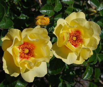 Малая плетистая роза. Свои необычайные свойства роза унаследовала от дикой розы Persica X Hulthemia. Ее очаровательные двухцветные цветы напоминают цветы Гибискуса. Это воплощение чистой чувственности в мире роз. Эта роза превратит ваши террасы в райские сады Кариб и Полинезии. Крепкий однородный куст, хорошо сбалансированный в цветении, наиболее выигрышно смотрится в горшках и в виде массивной посадки.