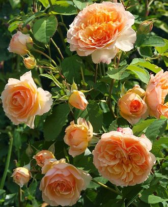 Янтарно-абрикосовые цветки чашевидной формы, крупные, с насыщенным карамльно-фруктовым ароматом. Пышные, волнистые и густомахровые лепестки превращают каждую розочку на ветвистом кусте в огромный шар. Старинная форма цветков придает им особый шарм. Цветы не боятся дождя, немного выгорают, на солнце не плавятся, когда стареют - просто осыпаются.