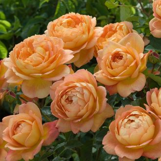Бутоны ярко-оранжево-красные, распускаются в чашевидные густомахровые цветки. Каждый лепесток лососево-розовый с красиво контрастирующей золотисто-желтой изнанкой. Благодаря чашевидной форме изнанка хорошо видна, а в сердце цветка играют более глубокие тона. Аромат теплый, насыщенный, чайный с оттенками яблок и гвоздики. Lady Of Shalott быстро вырастает в крупный ветвистый куст, со слегка поникающими побегами. Лист темно-зеленый, средний, полуглянцевый, молодой - с антоциановой окраской.