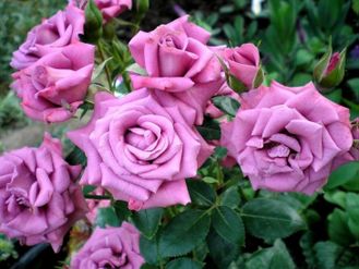 Миниатюрная сиренево-лиловая роза. Слабый аромат. Цветки, с аккуратно сложенными лепестками, появляются в небольших кистях. Листва средняя, средне-зеленая, густая, плотная.
