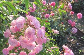 Прямостоячий непрерывно цветущий мускусный гибрид великолепного качества. Красивые пирамидальные кисти элегантных, ароматных густомахровых нежно-розовых цветочков в форме розеток. Великолепен в срезке.