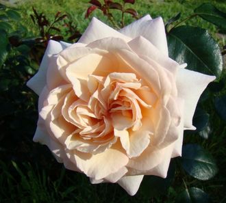 Окраска нежная, цвет золотистого шампанского. В самом начале можно различить розовые оттенки, но позднее цветки выцветают до почти белых. Они крупные, густомахровые. Цветки долго не увядают, устойчивы к дождю и ветру. В кистевидных соцветиях может быть более 11 цветков. Кисти распускаются постепенно в течение длительного времени, в течение лета одни сменяются другими, цветение продолжается многие недели. Очень удачный сорт. Куст сильнорослый. Выносит полутень и холода. Листва темно-зеленая, блестящая, обильная, устойчива к заболеваниям