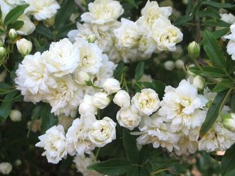 Ботаническое название вида - Rosa banksiae alba - получено по имени английского ботаника Джозефа Бэнкса, который завез розу в числе других растений в Европу из Китая еще в конце XVIII века. Вид имеет сильные густые вьющиеся побеги, лишенные шипов, длиной до 7-8 метров. Листья темно-зеленые, узкие, изящные. Цветки белые, махровые, мелкие до 1 см в диаметре, собраны в зонтиковидные соцветия диаметром 8-11 см. Имеют нежный аромат фиалки. Цветение раннее, очень обильное и декоративное, но однократное