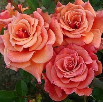Необычная и очень привлекательная флорибунда с массой крупных ароматных цветков восхитительной формы в карамельных, кофейных и бронзовых тонах. Куст сильный, хорошей формы, устойчив к заболеваниям.