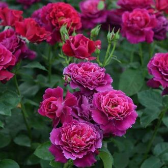 Раскрывшись, они играют пурпурно-фиолетовыми тонами. У розы кистевидные соцветия (от 3 до 5), а главное, она держит побеги прямостоячими. Обладает сладким цитрусовым ароматом.Роза имеет хорошую устойчивость к морозам и хорошо себя проявила в сезоны затяжных дождей.