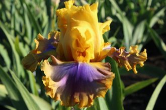 С - ярко-желтые, солнечные; Ф - желтые, с выбеленным центром на фолах, покрытым легким, фиолетовым напылением, который более насыщен к центру; Б - ярко-желтая. Высота 84 см. Куст необыкновенной красоты. Ирис сильно гофрированный. Эффектный, солнечный цветок, создающий праздничное настроение!