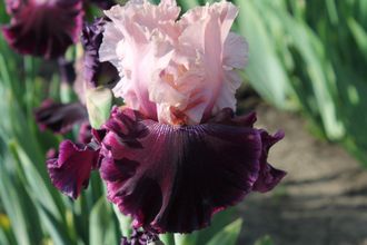 PURE ROMANCE Артикул: 912 300 руб. нет в наличии Поделиться: Стандарты дымчато-светло-розовые, темнее по центральной жилке. Фолы широкие, перекрывающиеся цвета бургунди с кромкой цвета стандартов. Бородки бело-мандариновые. Гофрированный.