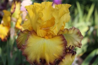 RIM OF FIRE Артикул: 923 600 руб. нет в наличии Поделиться: Очень крупный, гофрированный и кружевной, медово - желтый цветок с ярко-красной каймой на Ф и белой вспышкой у желтых Б.