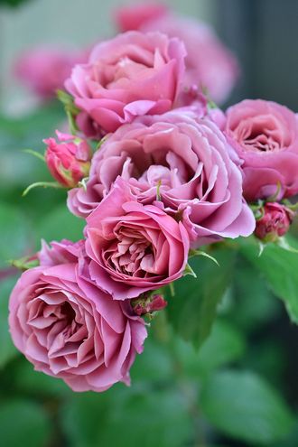 Соцветия из 3-10 бутонов цветут в течении 2 х недель. Цветки переливаются разными оттенками розового, от лилового до припыленного цвета мальвы. Осенью появляются коричневые оттенки. Хотя в описании указан слабый чайный запах, но в действительности он чувствуется довольно хорошо, особенно осенью. Роза хороша для первого ряда. Противостоит всем разновидностям болезней, очень здоровая, однако осенью в октябре -ноябре побеги снизу стоят без листвы.