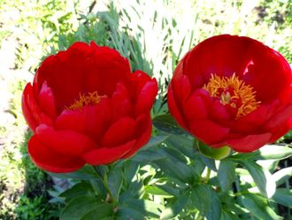 Цветок чашевидный, трехрядный, сверкающий, интенсивного ало-красного цвета. Куст стройный, эффектный, стебли прочные. Умеет восстанавливаться от кусочков корней, очень живучий.