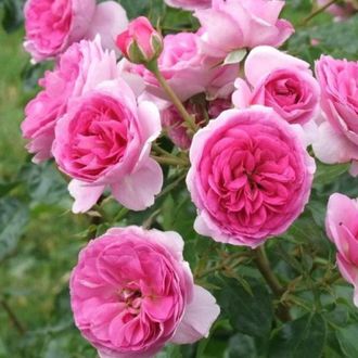 Новинка 2016 года. Плетистая роза с аркообразными побегами .Отлично подойдет для арок, пергол, решеток. Может выращиваться как шраб. Цветки, махровые, розово-сиреневые собраны в крупные соцветия, обладают сладким, пряным ароматом. Цветение повторное. Листва устойчивая к мучнистой росе, среднеустойчивая к чёрной пятнистости.