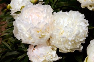 Махровый розовидный. Цветок телесно-белый с румянцем на центральных лепестках, прекрасной формы и окраски, диаметром 20 см. Куст плотный, высотой 80 см. Стебли прочные. Позднего срока цветения. Жизнестойкий обильноцветущий сорт. Прекрасная срезка и замечательное украшение сада. Сорт экстра-класса!