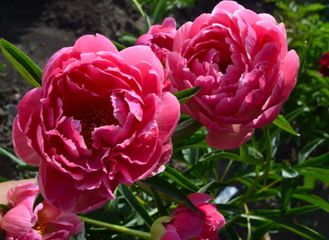 Coral Fey (Фей, 1973) Гибрид. Полумахровый. Очень декоративные ,сильно разрезные, светло-зеленые листья. Куст невысокий 75см, Диаметр цветка 16 см. Цвет ярко-розово-коралловый. Высота 80 см. Срок цветения очень ранний.