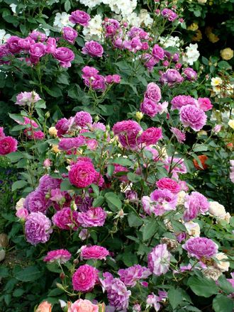 Японский сорт. Флорибунда Цветки диаметром 8 см, махровые (26-40 лепестков), тёмно-розовые со смешанными розовыми и пурпурными оттенками, в соцветиях. Лепестки волнистые. Аромат сильный. Цветение повторное. Листья маленькие, матовые, высокоустойчивые к болезням. Побеги без шипов или почти без шипов. Куст компактный, высотой 70-90 см.