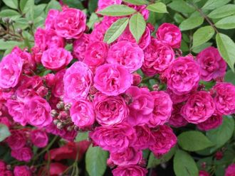 Прямостоячий непрерывно цветущий сорт с карминно-розовыми цветками в крупных кистях. Цветки прекрасно выдерживают дождь. Листва очень устойчива к заболеваниям, темно-зеленая, блестящая. Очень долго стоит в срезке. В период цветения куст розы выглядит очень празднично, как будто украшен яркими махровыми шарами.