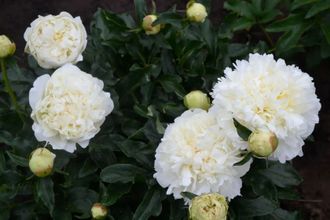Густомахровый цветок, бутоны крупные с зеленоватым оттенком, шаровидной формы, чисто-белого цвета, диаметром 16 см. Куст мощный, высотой 80 см. Стебли толстые, прочные. Аромат очень сильный, розовый. Один из лучших белых сортов, прекрасная срезка. Срок цветения поздний.