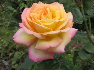 Цветки невероятно крупные и красивые на всех стадиях роспуска, от элегантных бутонов до полностью раскрытого цветка, хотя, на самом деле, в культуре сорт очень изменчив. К примеру, цвет обычно нежно-желтый с малиновым краем, выгорает до кремово-розового, на практике меняется в зависимости от времени года и места выращивания. Запах также меняется. Многие жалуются, что сорт не пахнет, другие описывают аромат как сильный, яркий, сладкий и фруктовый. Сильнорослый куст, крепкие лепестки, крупная темно-зеленая листва, и хорошая устойчивость к заболеваниям.
